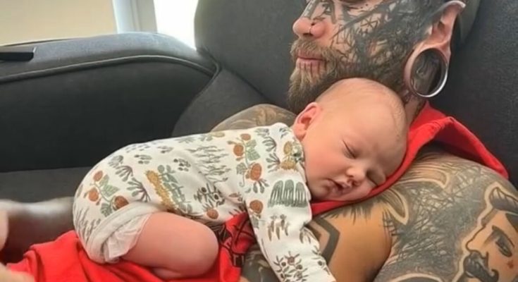 24-year-old dad, whose body is completely covered with more than 200 tattoos, removed them for the sake of his baby daughter 😭😲… Better sit down before seeing him today