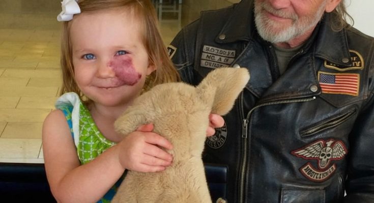 Biker asked to adopt the little girl with facial tumor whom nobody else wanted. I watched through the observation window as this massive man in a leather vest covered in patches knelt in front of little Ruth and asked if she’d like to come home with him.
