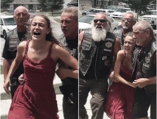 The girl couldn’t have been older than fifteen. She trembled in torn clothing, her sobs fueling the misunderstanding. The station attendant, convinced he was witnessing a kidnapping, frantically gestured at the scene while relaying to emergency operators that a “biker gang” was taking a young girl.