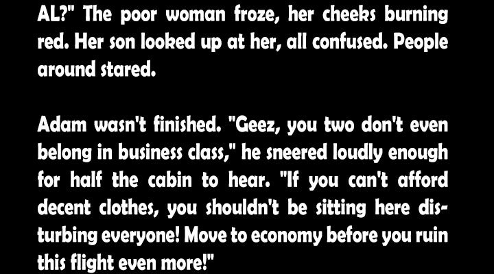 “Well, maybe,” Adam said, voice rising now, “if you can’t afford to raise a kid who knows how to act in public, you shouldn’t be in business class. People like you don’t belong here.”