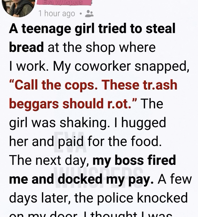 It was late afternoon, that slow hour when the shop feels heavy and quiet, when the air smells like bread and dust and tired feet. I was behind the counter, counting change, when I noticed her hovering near the shelves. A teenage girl. Maybe sixteen. Thin jacket. Hair pulled back too tightly, like she didn’t want it to be noticed.