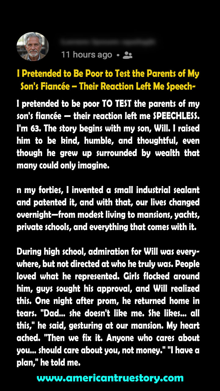 I Pretended to Be Poor to Test the Parents of My Son’s Fiancée – Their Reaction Left Me Speechless