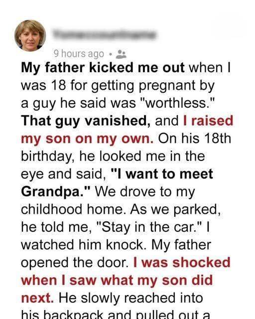 My son disappeared down the hallway, and I could hear the creak of the old drawer opening. I sat back down, trying to breathe. My father watched me like a man drowning in regret.