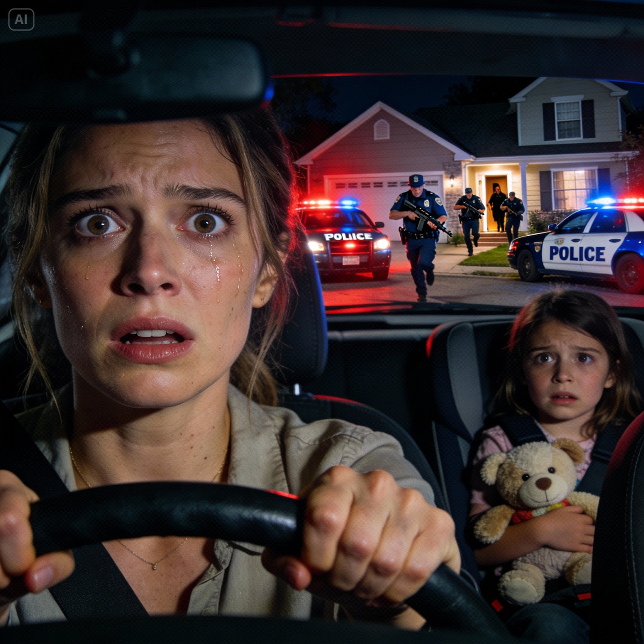 My husband, Daniel, told me to pull over somewhere safe before he explained. I parked two streets away, my heart racing as Emma clutched her stuffed rabbit in the backseat.
