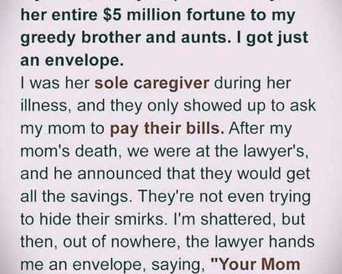 The room buzzed with excitement as my relatives whispered about their new wealth. They barely noticed me when the lawyer handed me the envelope.