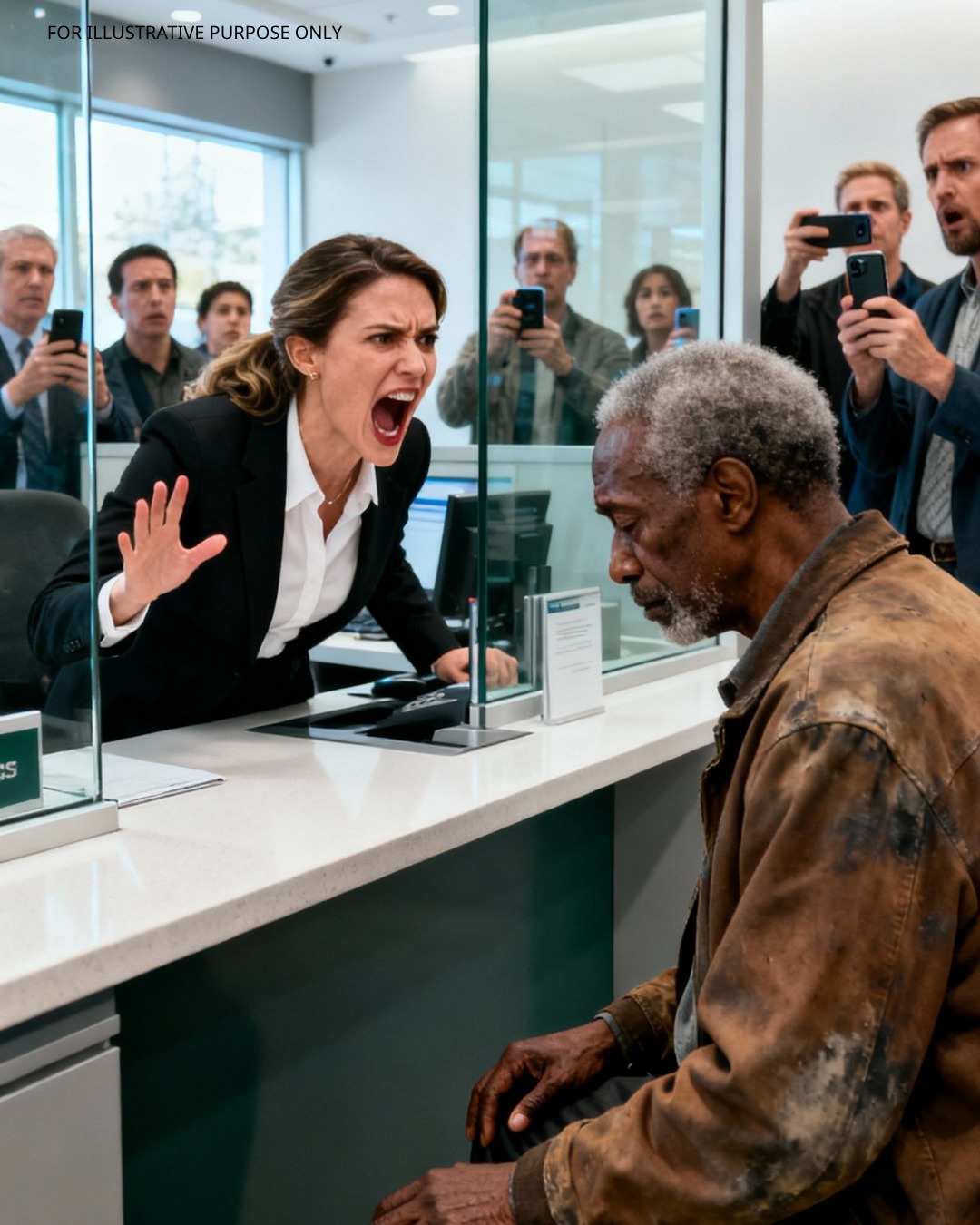 The air in the room seemed to freeze. Every customer in the lobby turned to look. The old man lowered his eyes, embarrassed but still calm.